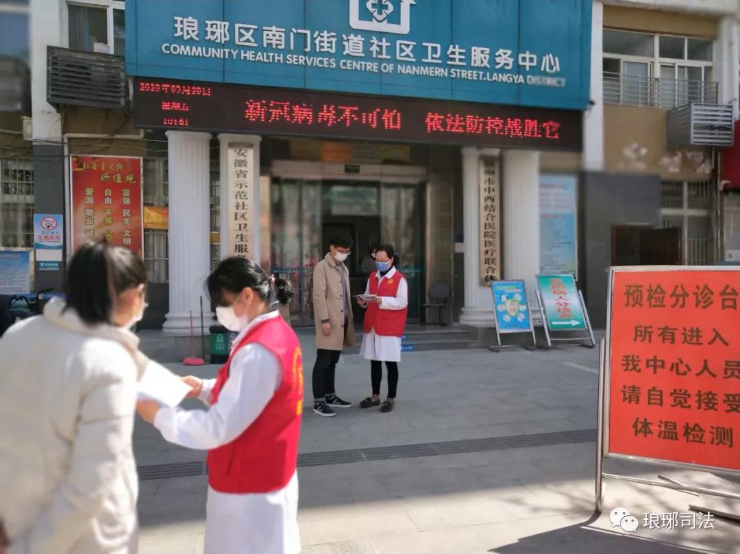 为发挥党员先锋模范作用,按照区委、区政府要求,琅琊区组织机关党员干部深入社区、工业园区等,开展人员排查、社区管控、防疫宣传等各项工作,补齐基层人员不足短板,全面掌控来往人员信息,摸清复工人数、来滁前行动轨迹等情况。一线干部既是防疫战士,也是普法志愿者,他们利用自身优势,多方协调,主动谋划,通过悬挂横幅、摆放宣传展板、发放疫情防控宣传册等方式,为广大群众普及了疫情防控相关法律法规和个人防护知识,重点宣讲了《传染病防治法》《突发事件应对法》《野生动物保护法》等与疫情防控相关的法律、法规和规章制度,实现了对接社区每个卡口、每栋居民楼防疫法治宣传全覆盖。