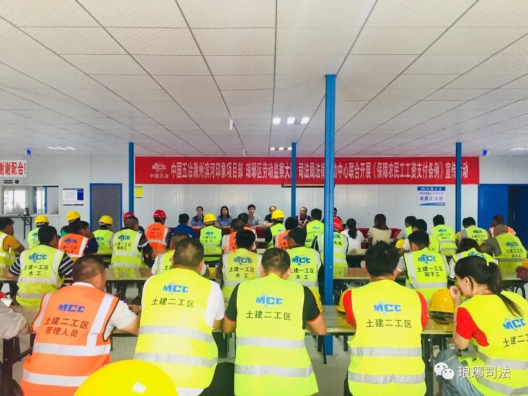 为帮助农民工树立法治观念,提高农民工依法维权能力,推动《保障农民工工资支付条例》贯彻实施,5月25日下午,琅琊区司法局走进中国五冶琅琊区滨河印象小区项目工地现场,精心组织了一场法治宣传教育活动,切实将“权为民所用,情为民所系,利为民所谋”落在实处。