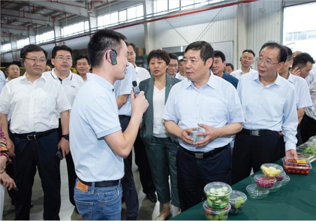 市委书记许继伟等市领导检查乐岁蔬果包装材料生产项目。 全媒体记者卢志永摄