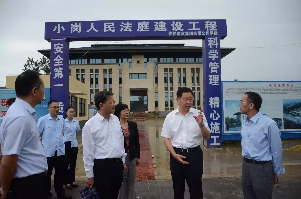 为了解人民法庭财务统管、经费保障、基础设施建设、业务装备、行装队伍建设等方面的情况,8月31日,最高人民法院司法行政装备管理局局长王少南一行至凤阳小岗人民法庭实地调研“两庭”建设项目。安徽省高级人民法院审判委员会委员张小红,滁州市中级人民法院党组书记、院长陈严法,凤阳县委政法委书记杨永春,凤阳法院副院长常立敖等陪同调研。