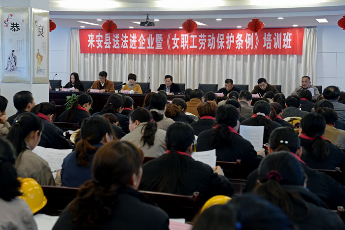 3月24日下午,我县在金禾公司会议室举办送法进企业暨《女职工劳动保护条例》培训班,县政协副主席、县总工会主席夏德银出席活动,县司法局、妇联和综治办负责人参加活动。