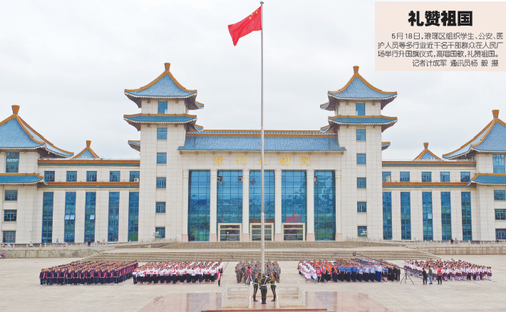 5月18日,琅琊区组织学生、公安、医护人员等多行业近千名干部群众在人民广场举行升国旗仪式,高唱国歌,礼赞祖国。