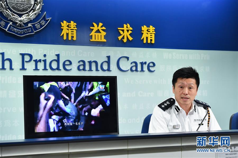 9月3日,香港特区政府警务处旺角警区指挥官韦能治在香港警方例行记者会上介绍情况。新华社记者刘大伟摄