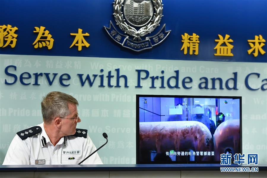 9月3日,香港特区政府警务处警察公共关系科总警司谢振中在香港警方例行记者会上介绍情况。新华社记者刘大伟摄