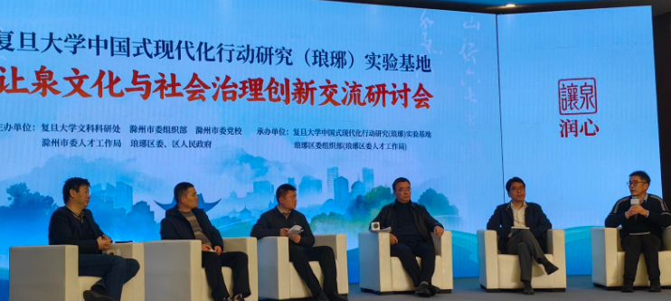 本次活动中,复旦大学与滁州市本地专家、学者围绕“‘让泉文化’在现代社会治理中的特殊价值”等话题开展交流研讨,琅琊区相关街道、社区负责人介绍了让泉文化在基层的具体实践。